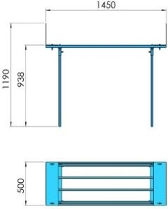 - TOTAL DIMENSIONS AND WEIGHT: Standard L. 1.450 X W. 500 X H. 1.190 mm - Weight: 15 Kg. With Slide L. 1.450 X W. 550 X H. 1.050 ÷ 1.300 mm - Weight: 20 Kg.