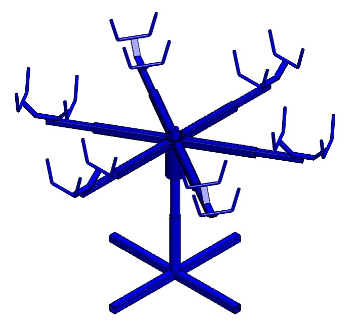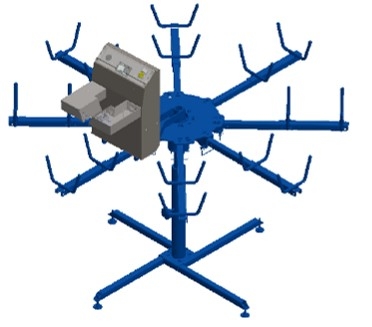 Rotating carousel with 4, 6 or 8 brackets (arms) to simplify both the counting and the creation of grafted vines bundles during the sorting and before the strapping phase. It can also simply be used to facilitate their movement from one area of the Sorting Line to another.