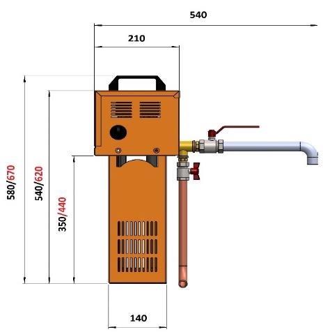 - DIMENSIONI E PESO: Versione h340 L. 540 x W. 210 x H. 580 mm - Versione h440 L. 540 x W. 210 x H. 670 mm - Peso Pompa completa di involucro in acciaio inox: 15,0 Kg.
