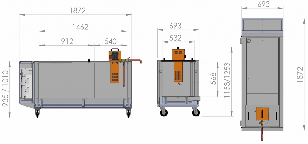 - INGOMBRI E PESI TOTALI MACCHINA: Senza Pompa L. 1.920 X W. 700 X H. 990 mm - Peso: 190 Kg. – Con Pompa L. 1.920 X W. 700 X H. 1.200 - Peso: 205 Kg.